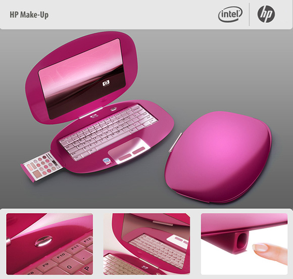 Se você pressionar o botão “Make-Up’, a tela mudaria para um modo de espelho e um estojo de maquiagem saltaria do lado (como um drive de CD/DVD). O Laptop teria também um dispositivo de impressão de unhas